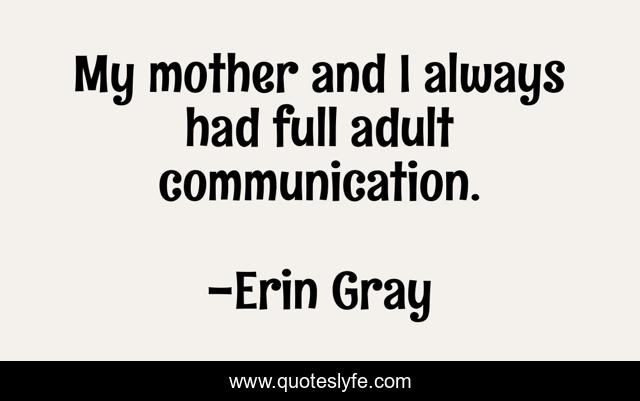 This page presents the quote "My mother and I always had full adult communication.". Author of this quote is Erin Gray. This quote is about always, adult, mother,.