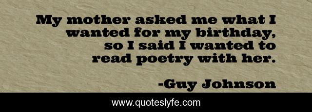 This page presents the quote "My mother asked me what I wanted for my birthday, so I said I wanted to read poetry with her.". Author of this quote is Guy Johnson. This quote is about me, poetry, mother,.