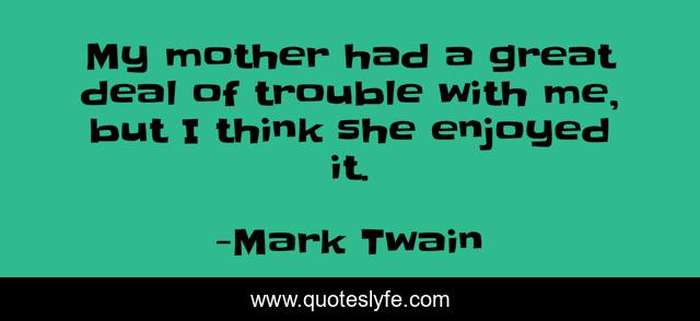 This page presents the quote "My mother had a great deal of trouble with me, but I think she enjoyed it.". Author of this quote is Mark Twain. This quote is about humor, values, inspirational, enthusiasm,.