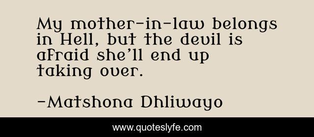 "Matshona Dhliwayo Quotes." Quoteslyfe.com, 2025. Sat. 06 Dec. 2025. <https://www.quoteslyfe.com/quote/My-mother-in-law-belongs-in-Hell-251265>.