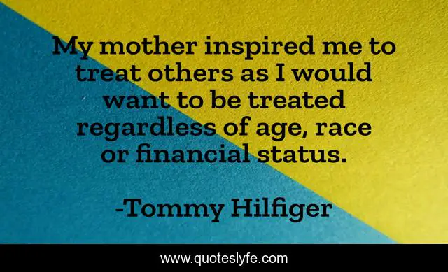 This page presents the quote "My mother inspired me to treat others as I would want to be treated regardless of age, race or financial status.". Author of this quote is Tommy Hilfiger. This quote is about financial, finance, mother,.