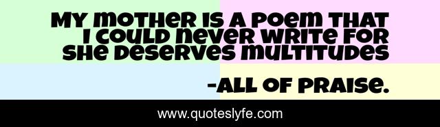 This page presents the quote "My mother is a poem that I could never write for she deserves multitudes". Author of this quote is all of praise.. .