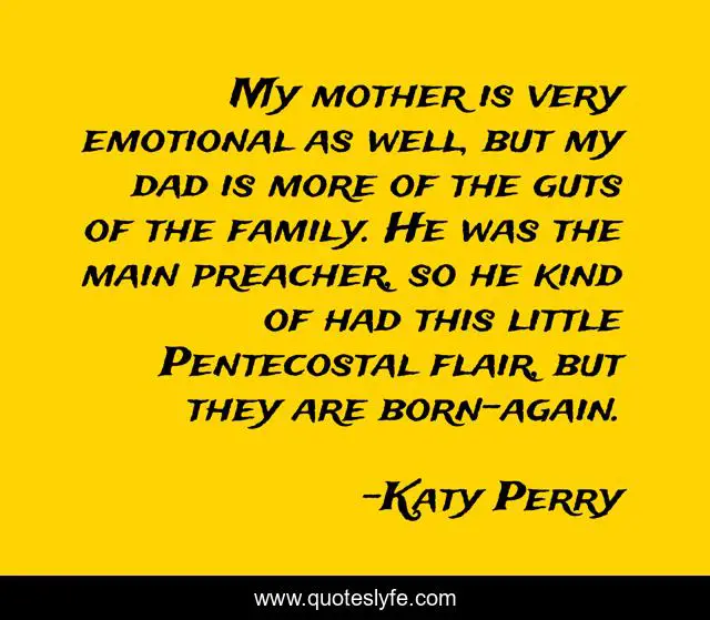 This page presents the quote "My mother is very emotional as well, but my dad is more of the guts of the family. He was the main preacher, so he kind of had this little Pentecostal flair, but they are born-again.". Author of this quote is Katy Perry. This quote is about emotional, family, mother,.
