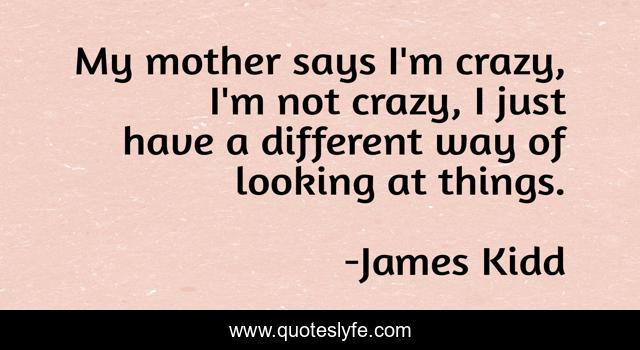 This page presents the quote "My mother says I'm crazy, I'm not crazy, I just have a different way of looking at things.". Author of this quote is James Kidd. This quote is about crazy, look, sheldon-cooper, things, not-crazy, mother, mum,.