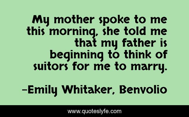 This page presents the quote "My mother spoke to me this morning, she told me that my father is beginning to think of suitors for me to marry.". Author of this quote is Emily Whitaker, Benvolio. .