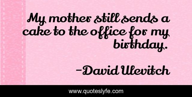 This page presents the quote "My mother still sends a cake to the office for my birthday.". Author of this quote is David Ulevitch. This quote is about cake, office, mother,.