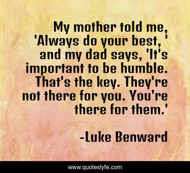 This page presents the quote "My mother told me, 'Always do your best, ' and my dad says, 'It's important to be humble. That's the key. They're not there for you. You're there for them.'". Author of this quote is Luke Benward. This quote is about humble, best, mother,.