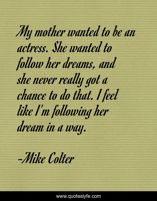 This page presents the quote "My mother wanted to be an actress. She wanted to follow her dreams, and she never really got a chance to do that. I feel like I'm following her dream in a way.". Author of this quote is Mike Colter. This quote is about chance, dream, mother,.