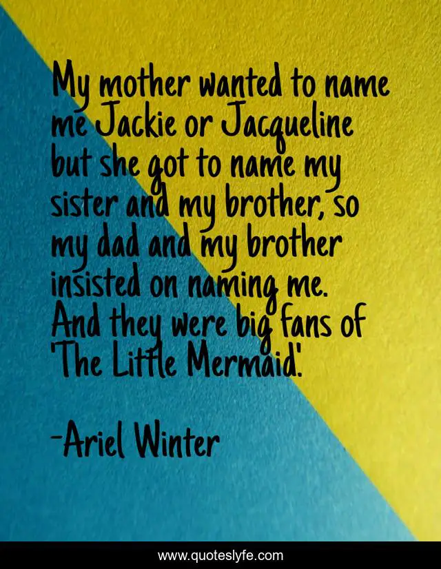 This page presents the quote "My mother wanted to name me Jackie or Jacqueline but she got to name my sister and my brother, so my dad and my brother insisted on naming me. And they were big fans of 'The Little Mermaid.'". Author of this quote is Ariel Winter. This quote is about sister, brother, mother,.