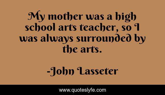 This page presents the quote "My mother was a high school arts teacher, so I was always surrounded by the arts.". Author of this quote is John Lasseter. This quote is about school, high school, mother,.