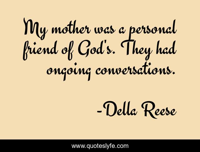 This page presents the quote "My mother was a personal friend of God's. They had ongoing conversations.". Author of this quote is Della Reese. This quote is about god, friend, mother,.