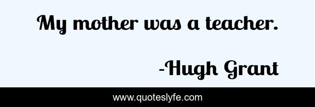 This page presents the quote "My mother was a teacher.". Author of this quote is Hugh Grant. .
