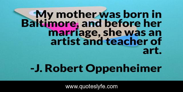 This page presents the quote "My mother was born in Baltimore, and before her marriage, she was an artist and teacher of art.". Author of this quote is J. Robert Oppenheimer. This quote is about marriage, art, mother,.