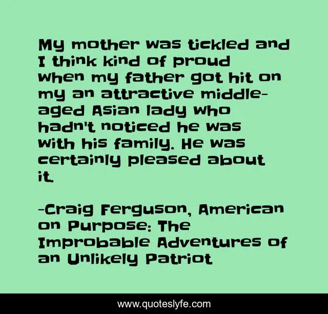 "Craig Ferguson, American on Purpose: The Improbable Adventures of an Unlikely Patriot Quotes." Quoteslyfe.com, 2025. Fri. 05 Dec. 2025. <https://www.quoteslyfe.com/quote/My-mother-was-tickled-and-I-think-76711>.