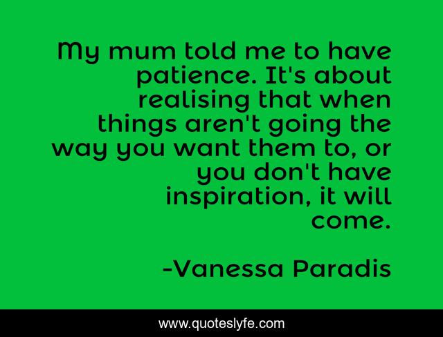 This page presents the quote "My mum told me to have patience. It's about realising that when things aren't going the way you want them to, or you don't have inspiration, it will come.". Author of this quote is Vanessa Paradis. .