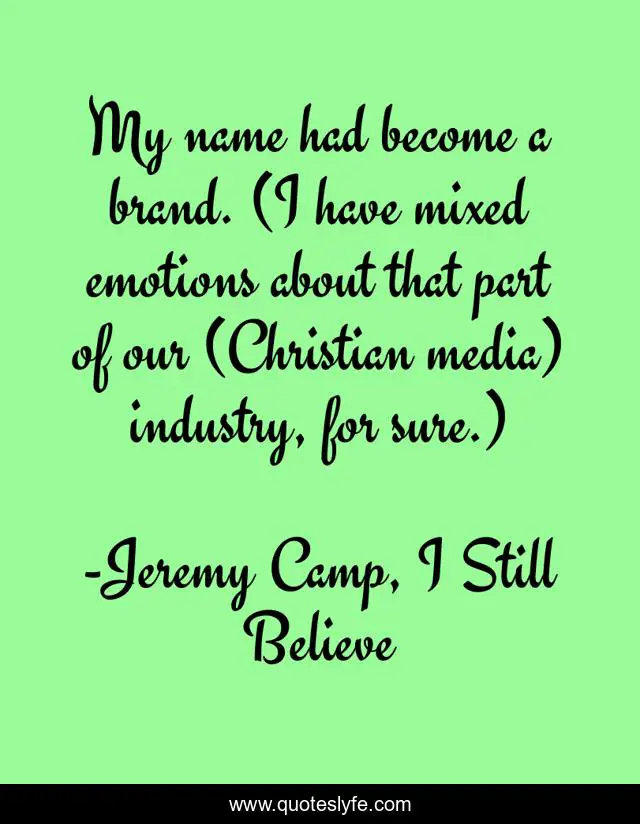 "Jeremy Camp, I Still Believe Quotes." Quoteslyfe.com, 2025. Fri. 05 Dec. 2025. <https://www.quoteslyfe.com/quote/My-name-had-become-a-brand-I-237527>.
