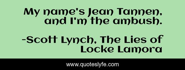 "Scott Lynch, The Lies of Locke Lamora Quotes." Quoteslyfe.com, 2025. Fri. 05 Dec. 2025. <https://www.quoteslyfe.com/quote/My-name-s-Jean-Tannen-and-I-81849>.