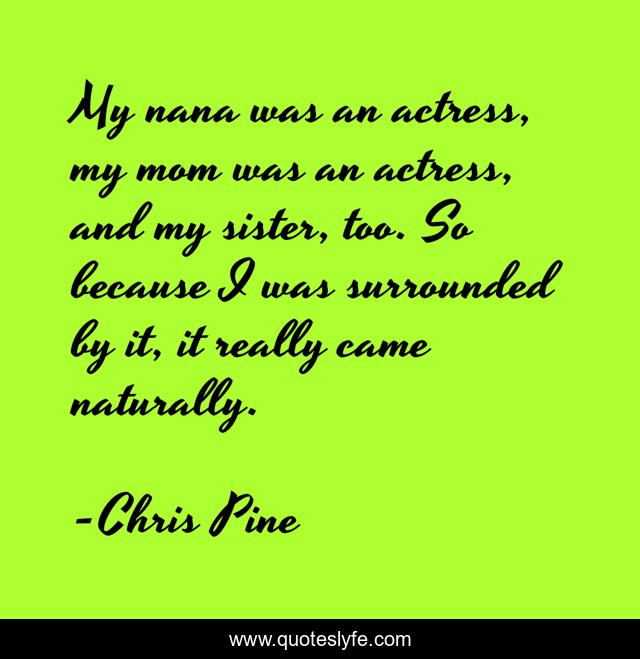 This page presents the quote "My nana was an actress, my mom was an actress, and my sister, too. So because I was surrounded by it, it really came naturally.". Author of this quote is Chris Pine. This quote is about sister, surrounded, actress,.