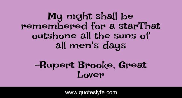 "Rupert Brooke, Great Lover Quotes." Quoteslyfe.com, 2025. Tue. 09 Dec. 2025. <https://www.quoteslyfe.com/quote/My-night-shall-be-remembered-for-a-195234>.