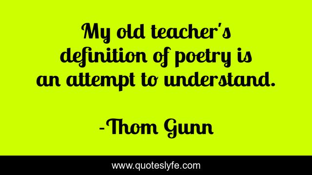 This page presents the quote "My old teacher's definition of poetry is an attempt to understand.". Author of this quote is Thom Gunn. This quote is about understand, old, poetry,.