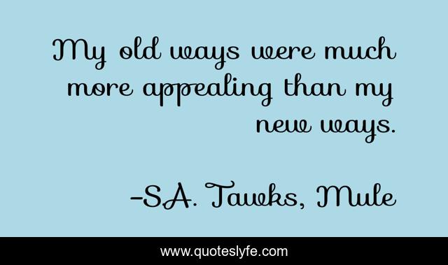 "S.A. Tawks, Mule Quotes." Quoteslyfe.com, 2025. Mon. 08 Dec. 2025. <https://www.quoteslyfe.com/quote/My-old-ways-were-much-more-appealing-137278>.