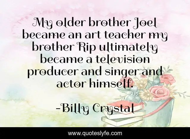 This page presents the quote "My older brother Joel became an art teacher my brother Rip ultimately became a television producer and singer and actor himself.". Author of this quote is Billy Crystal. This quote is about television, art, brother,.