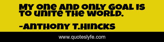 This page presents the quote "My one and only goal is to unite the world.". Author of this quote is Anthony T.Hincks. This quote is about life, the-world, goal, my, philosophy, unite, world, dream,.