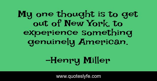 This page presents the quote "My one thought is to get out of New York, to experience something genuinely American.". Author of this quote is Henry Miller. .
