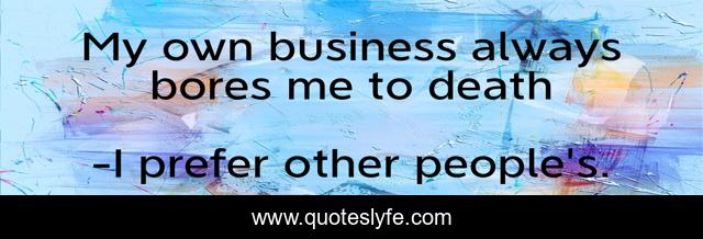This page presents the quote "My own business always bores me to death". Author of this quote is I prefer other people's.. .