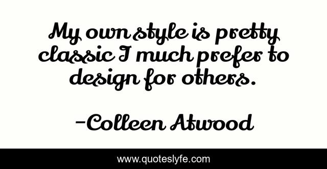 This page presents the quote "My own style is pretty classic I much prefer to design for others.". Author of this quote is Colleen Atwood. This quote is about style, my own, classic,.