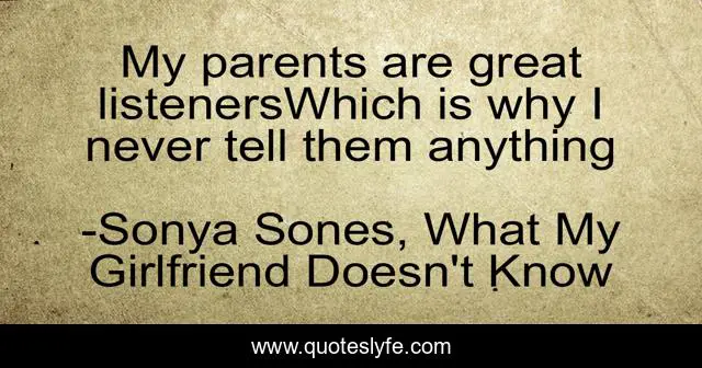"Sonya Sones, What My Girlfriend Doesn't Know Quotes." Quoteslyfe.com, 2025. Sat. 06 Dec. 2025. <https://www.quoteslyfe.com/quote/My-parents-are-great-listenersWhich-is-why-212110>.