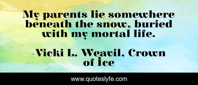 "Vicki L. Weavil, Crown of Ice Quotes." Quoteslyfe.com, 2025. Mon. 08 Dec. 2025. <https://www.quoteslyfe.com/quote/My-parents-lie-somewhere-beneath-the-snow-188593>.