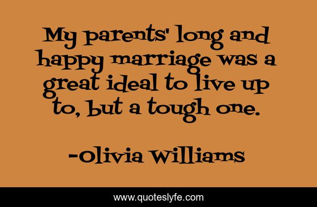 This page presents the quote "My parents' long and happy marriage was a great ideal to live up to, but a tough one.". Author of this quote is Olivia Williams. This quote is about great, parents, happy,.