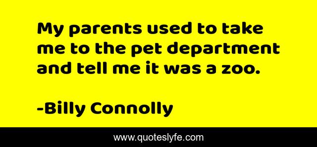 This page presents the quote "My parents used to take me to the pet department and tell me it was a zoo.". Author of this quote is Billy Connolly. This quote is about me, parents, zoo,.