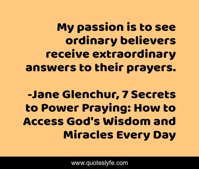 "Jane Glenchur, 7 Secrets to Power Praying: How to Access God's Wisdom and Miracles Every Day Quotes." Quoteslyfe.com, 2025. Sat. 06 Dec. 2025. <https://www.quoteslyfe.com/quote/My-passion-is-to-see-ordinary-believers-231978>.