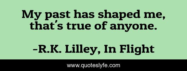 This page presents the quote "My past has shaped me, that's true of anyone.". Author of this quote is R.K. Lilley, In Flight. .