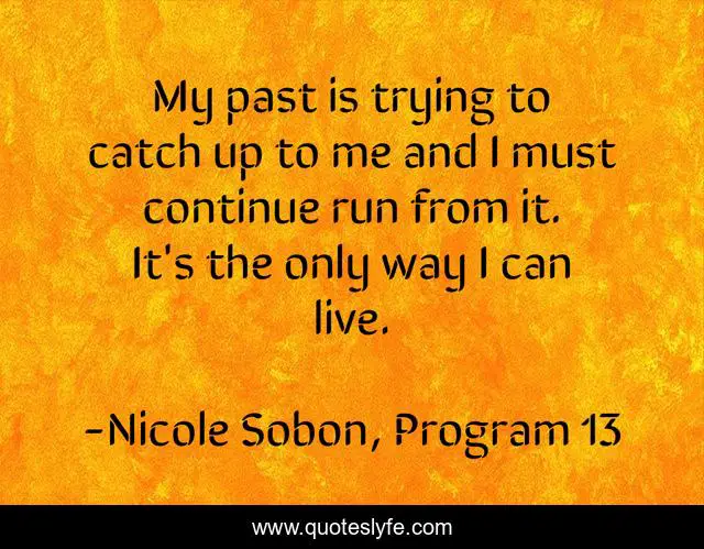 This page presents the quote "My past is trying to catch up to me and I must continue run from it. It's the only way I can live.". Author of this quote is Nicole Sobon, Program 13. This quote is about past, live, run,.
