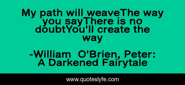 This page presents the quote "My path will weaveThe way you sayThere is no doubtYou'll create the way". Author of this quote is William O'Brien, Peter: A Darkened Fairytale. This quote is about mystical, poem, magic, fairytale, wizard, dark, witch, inspirational, crystals,.