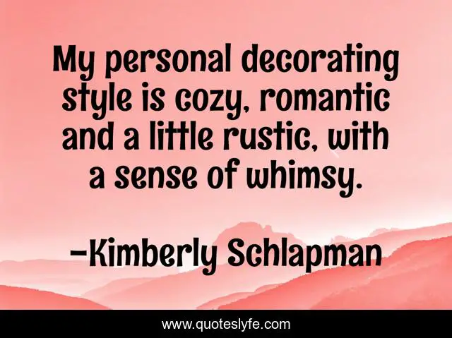 "Kimberly Schlapman Quotes." Quoteslyfe.com, 2025. Sun. 07 Dec. 2025. <https://www.quoteslyfe.com/quote/My-personal-decorating-style-is-cozy-romantic-324484>.