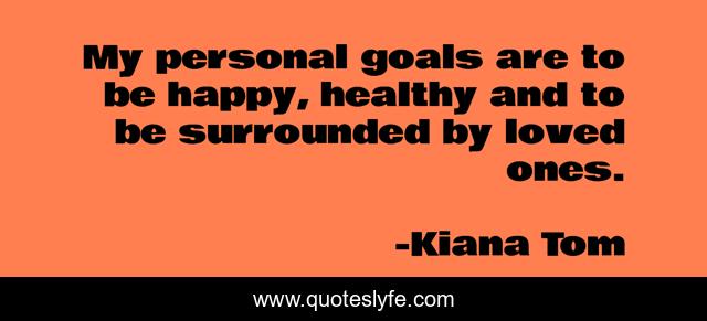 This page presents the quote "My personal goals are to be happy, healthy and to be surrounded by loved ones.". Author of this quote is Kiana Tom. This quote is about be happy, goals, happy,.