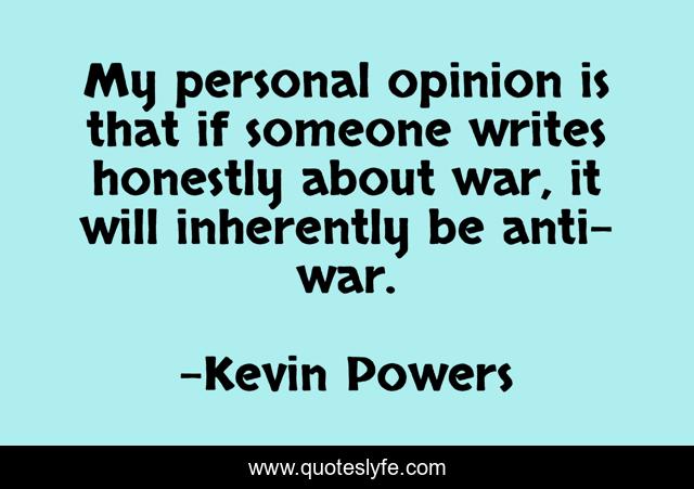 This page presents the quote "My personal opinion is that if someone writes honestly about war, it will inherently be anti-war.". Author of this quote is Kevin Powers. This quote is about personal, opinion,.