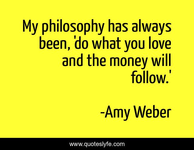 This page presents the quote "My philosophy has always been, 'do what you love and the money will follow.'". Author of this quote is Amy Weber. This quote is about philosophy, love, affection,.