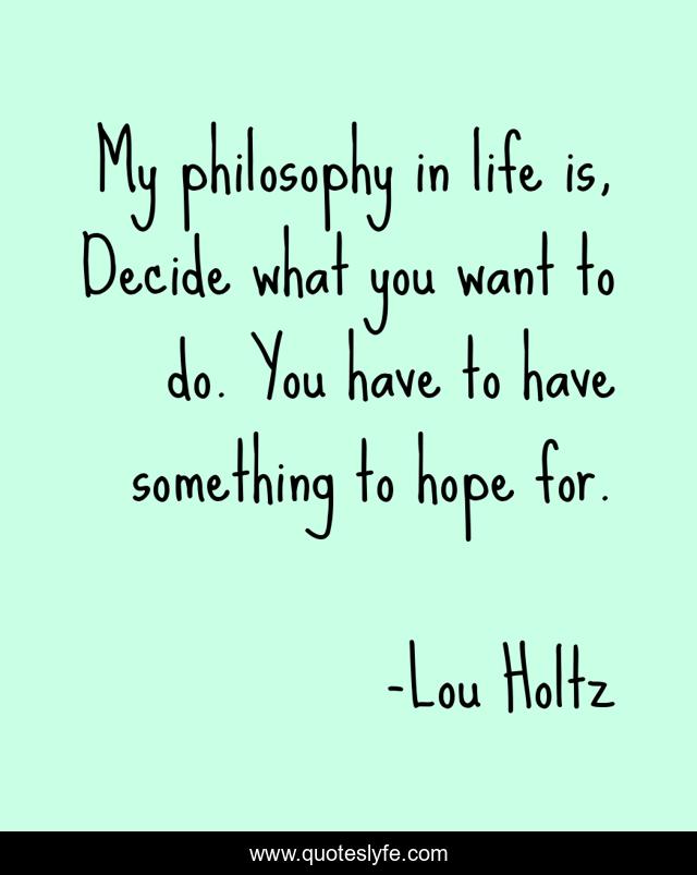This page presents the quote "My philosophy in life is, Decide what you want to do. You have to have something to hope for.". Author of this quote is Lou Holtz. This quote is about life, philosophy,.