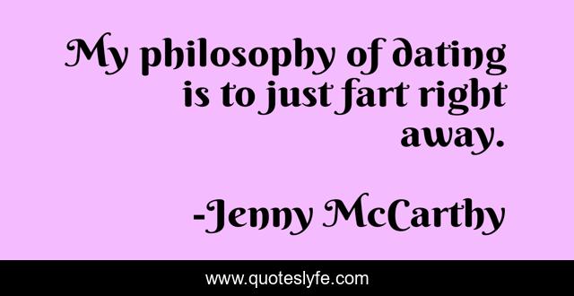 This page presents the quote "My philosophy of dating is to just fart right away.". Author of this quote is Jenny McCarthy. This quote is about philosophy, right, just,.