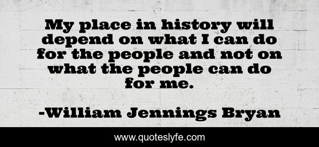 This page presents the quote "My place in history will depend on what I can do for the people and not on what the people can do for me.". Author of this quote is William Jennings Bryan. This quote is about me, place, people,.