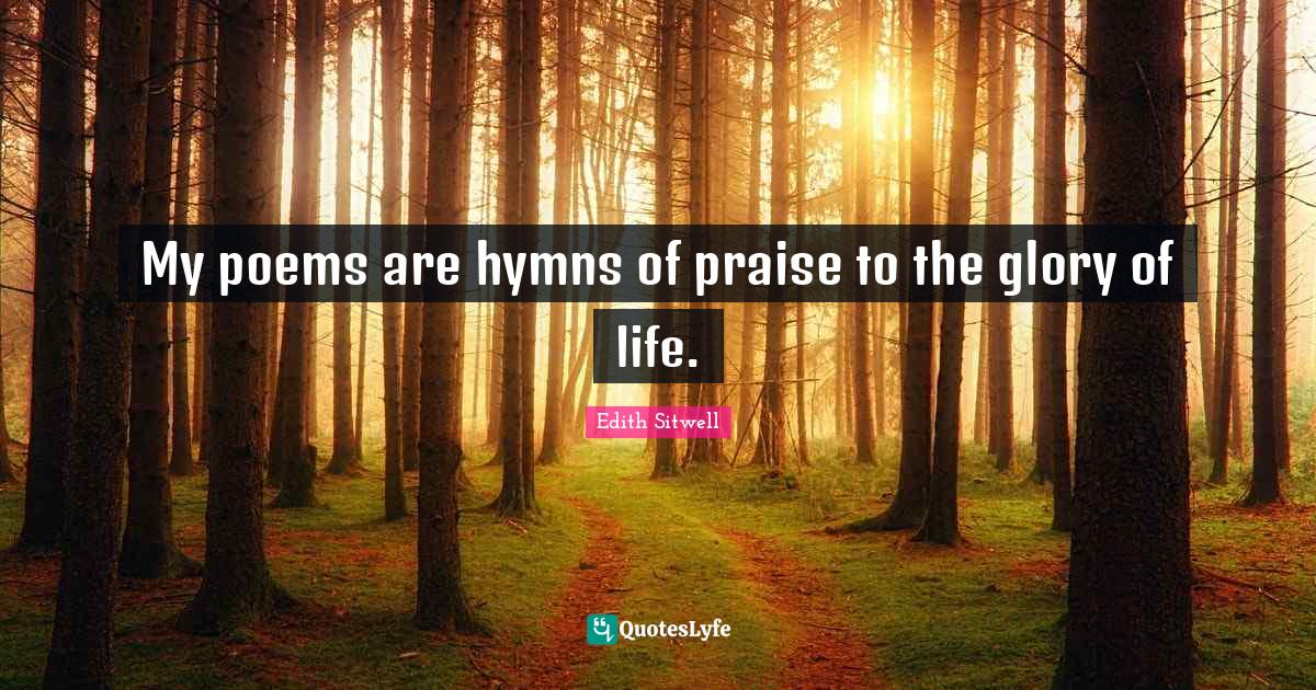 This page presents the quote "My poems are hymns of praise to the glory of life.". Author of this quote is Edith Sitwell. This quote is about life, praise, art, hymns, glory,.