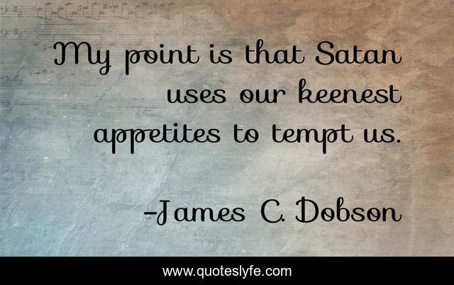 This page presents the quote "My point is that Satan uses our keenest appetites to tempt us.". Author of this quote is James C. Dobson. This quote is about keenest, our, appetites, us, uses, tempt, satan,.