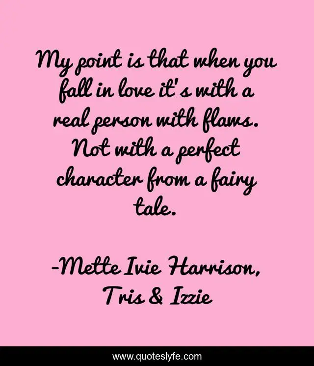 This page presents the quote "My point is that when you fall in love it's with a real person with flaws. Not with a perfect character from a fairy tale.". Author of this quote is Mette Ivie Harrison, Tris & Izzie. .