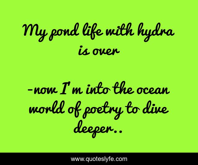 This page presents the quote "My pond life with hydra is over". Author of this quote is now I’m into the ocean world of poetry to dive deeper... .