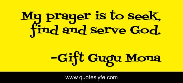 This page presents the quote "My prayer is to seek, find and serve God.". Author of this quote is Gift Gugu Mona. This quote is about prayer, seek, find, serve-god,.